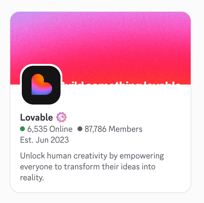 They launched the Lovable Makers Discord, which now has over 87k members.